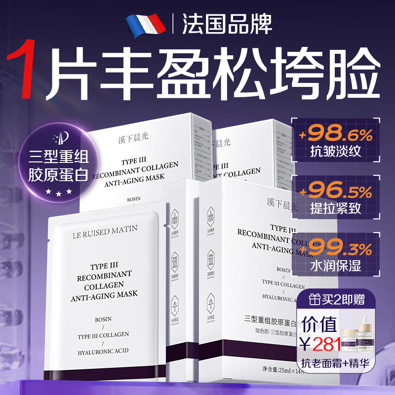 溪下晨光法国胶原蛋白灌注面膜抗皱紧致抗衰老补水美淡白斑女男士去黄提亮