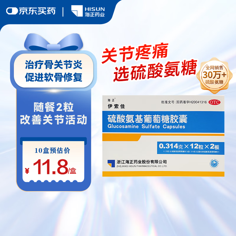 伊索佳硫酸氨基葡萄糖胶囊 0.314g*24粒 氨糖原发性及继发性骨关节炎氨糖软骨素