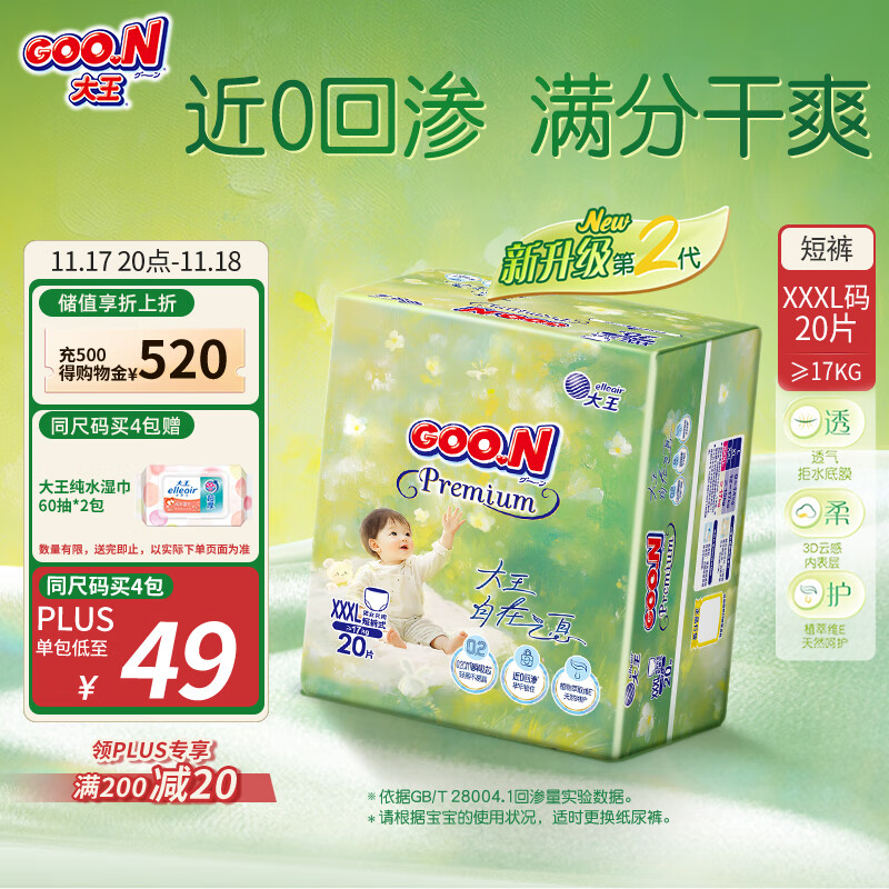 大王(GOO.N)自在之息拉拉裤XXXL20片(17kg以上) 瞬吸芯体 轻薄干爽