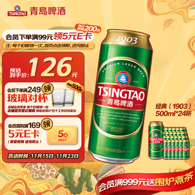 青岛啤酒(TsingTao)经典(1903)500ml*24听大罐 整箱批发24瓶 一厂生产