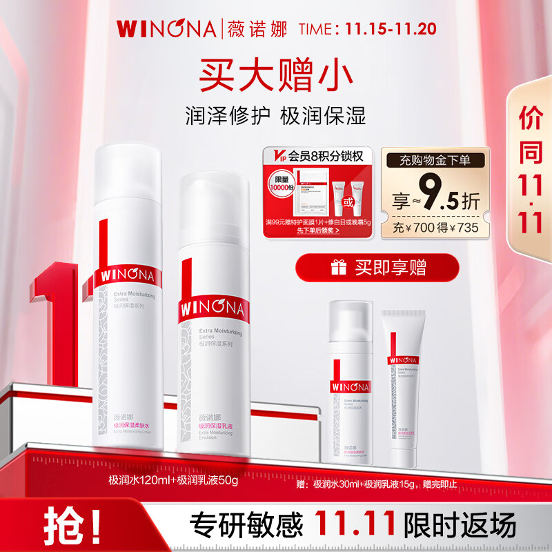 薇诺娜极润保湿水乳2件套爽肤水乳液补水保湿护肤品套装