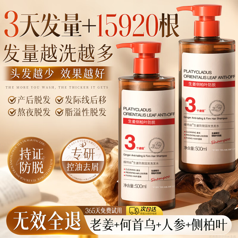 维特丝洗发水防脱育发固养发男女士生姜控油去屑侧柏叶洗头膏露金榜第1