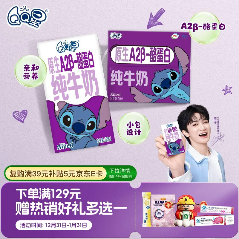QQ星原生A2β-酪蛋白纯牛奶125ml*28盒/箱 礼盒装【周深同款QQ星】
