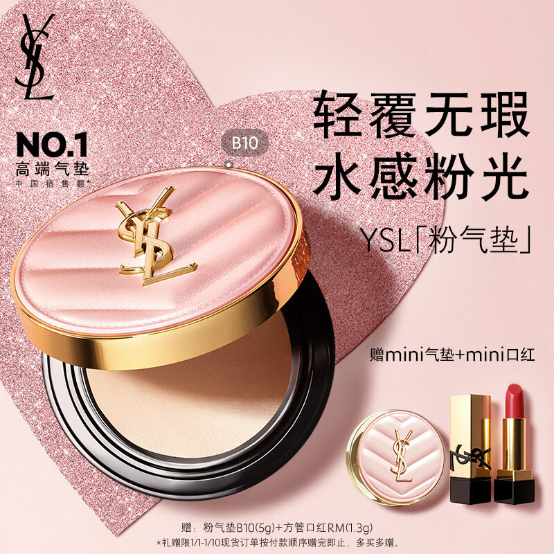 YSL圣罗兰粉气垫B10遮瑕持久滋润防晒化妆品生日礼物送女友新年礼物