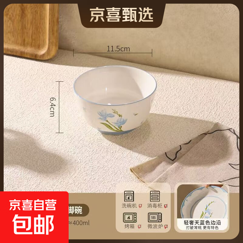 【摩登主妇同源】蓝百合碗盘餐具家用米饭碗盘子菜盘汤碗面碗鱼盘 4.5英寸高脚碗