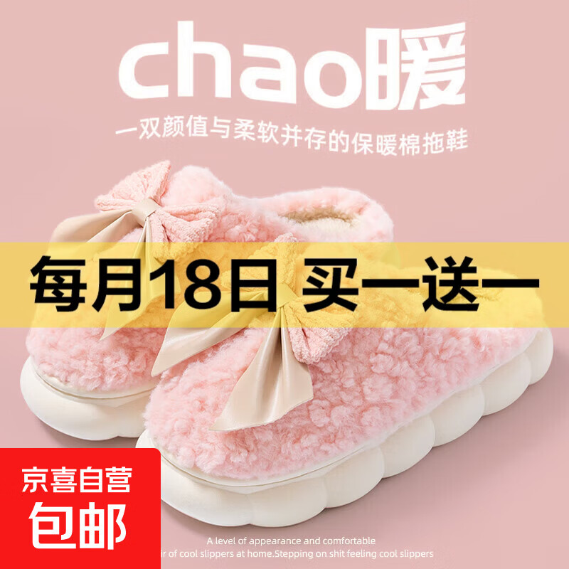 棉拖鞋女秋冬季2024新款家居家用情侣室内外保暖厚底防滑毛毛拖鞋 粉红色 38-39 【建议拍大一码】