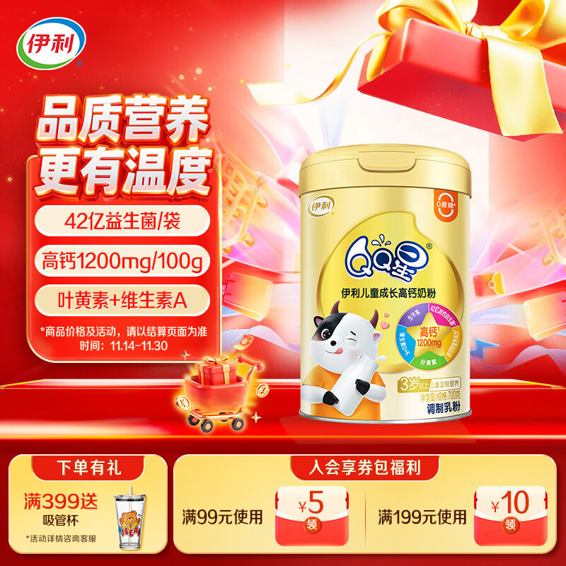 伊利QQ星儿童成长高钙奶粉 儿童学生奶粉 奶粉儿童3岁+ 营养早餐 700g
