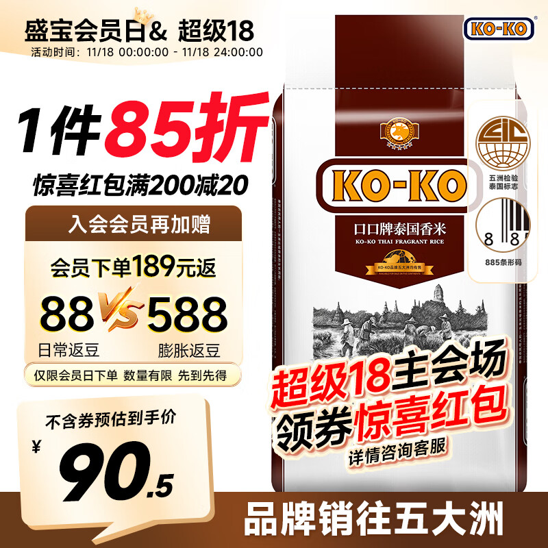 KO-KO(口口牌) 泰国香米 大米20斤 原装进口 长粒米 koko泰国香米