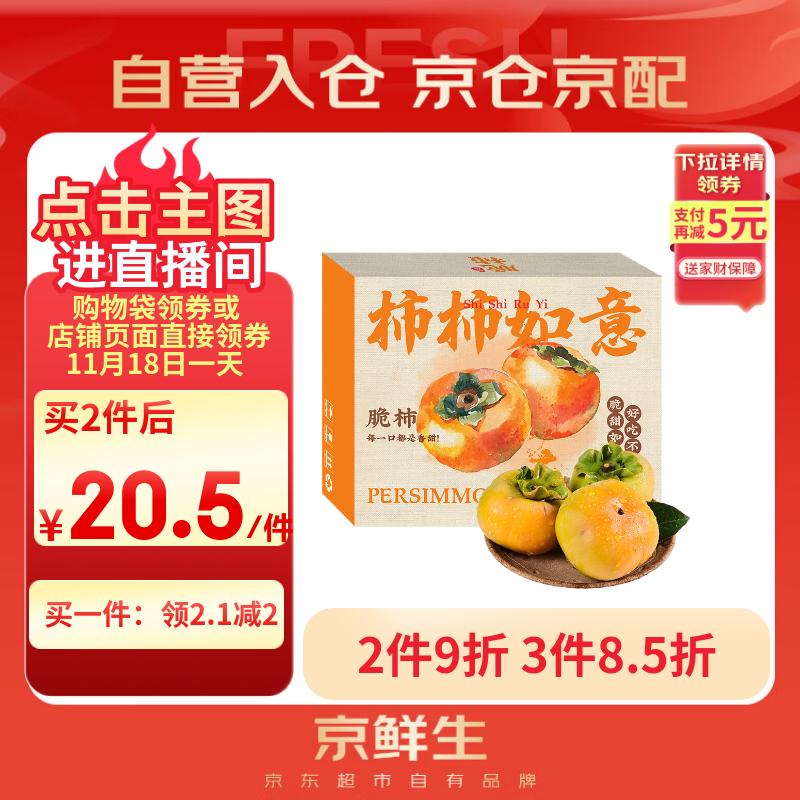 京鲜生 新鲜脆柿子5斤 单果150g起 甜柿子 生鲜水果礼盒