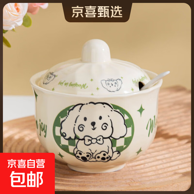 厨房盐罐调味罐陶瓷高颜值密封防潮猪油罐炖盅带盖大容量辣椒罐 【奶油小狗】调味罐一套(送勺)