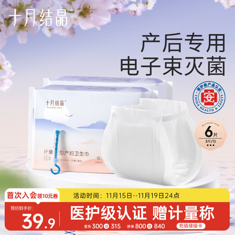 十月结晶计量卫生巾孕产妇产后专用裤型卫生巾(赠计量称)3片×2包