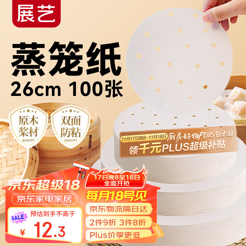 展艺蒸笼纸26cm*100张一次性食品级圆形包子馒头粽子面点蒸屉不沾垫纸