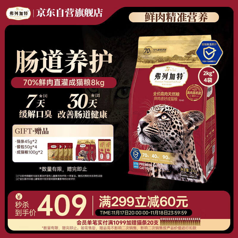 弗列加特猫粮 全价鲜肉天然粮 肠道养护配方 成猫猫粮鸡肉8kg