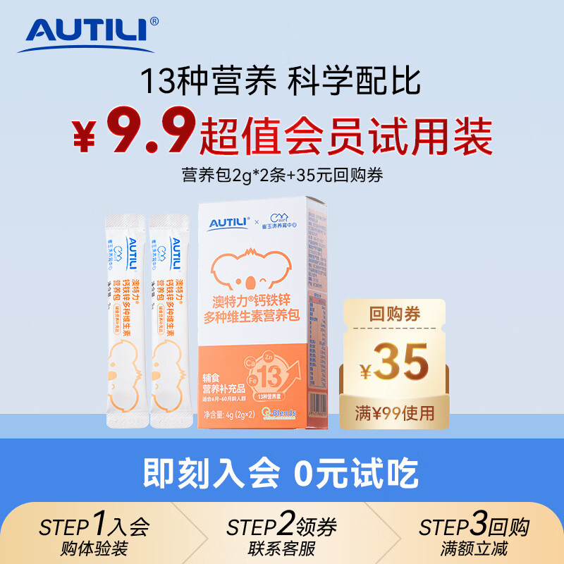 AUTILI澳特力【崔玉涛团队亲研】钙铁锌多维营养包 婴幼儿童辅食无敏配方 2袋