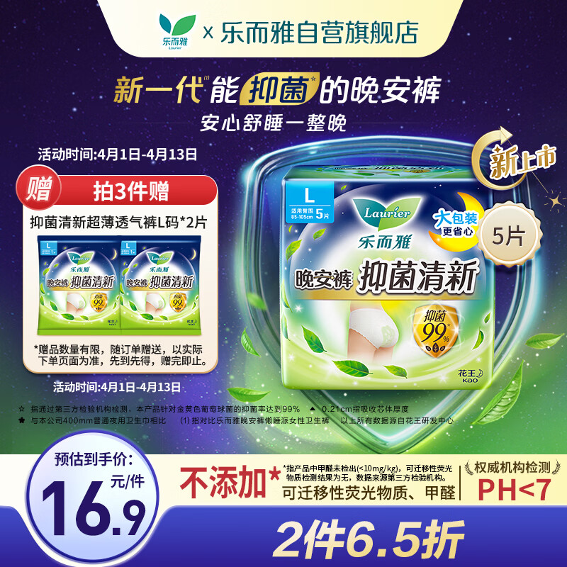 乐而雅花王抑菌清新晚安裤L码5片安睡裤裤型卫生巾姨妈巾安心裤京东自营