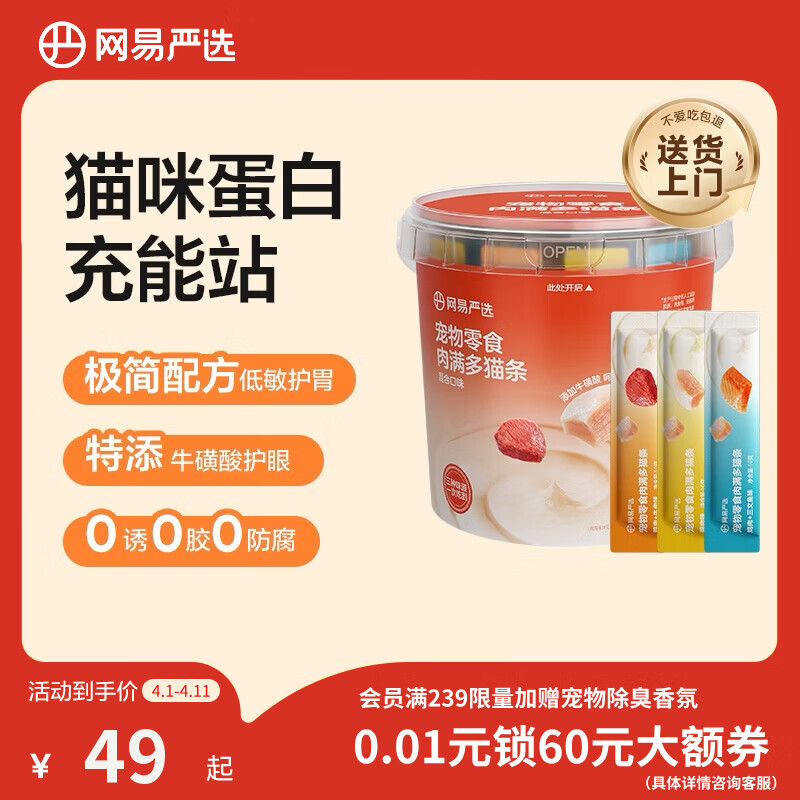 网易严选肉满多猫条成猫幼猫通用猫咪零食湿粮猫条混合口味 10g*80条