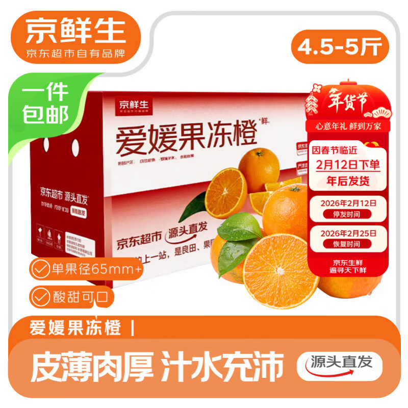 京鲜生 四川爱媛38号果冻橙4.5-5斤 单果65mm+ 新鲜带叶 源头直发包邮