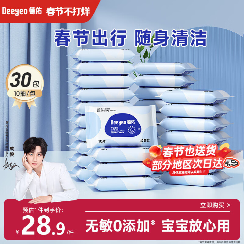 德佑婴儿手口湿巾 宝宝湿纸巾便携小包10抽*30包 独立装便携出行必备