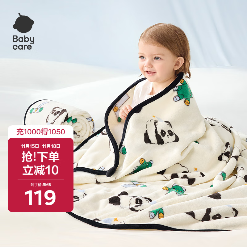 babycare婴儿毛毯抑菌绒毯单层儿童幼儿园被咘咘熊猫白 110*140