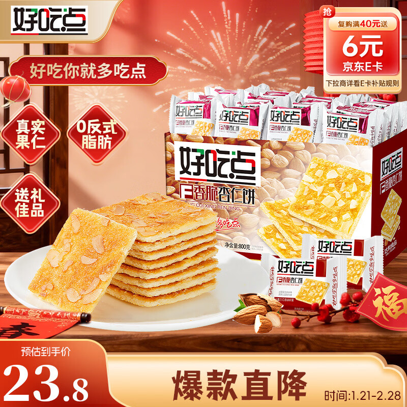 好吃点香脆杏仁饼800g休闲零食薄脆饼干礼盒 年货节企业采购好礼推荐