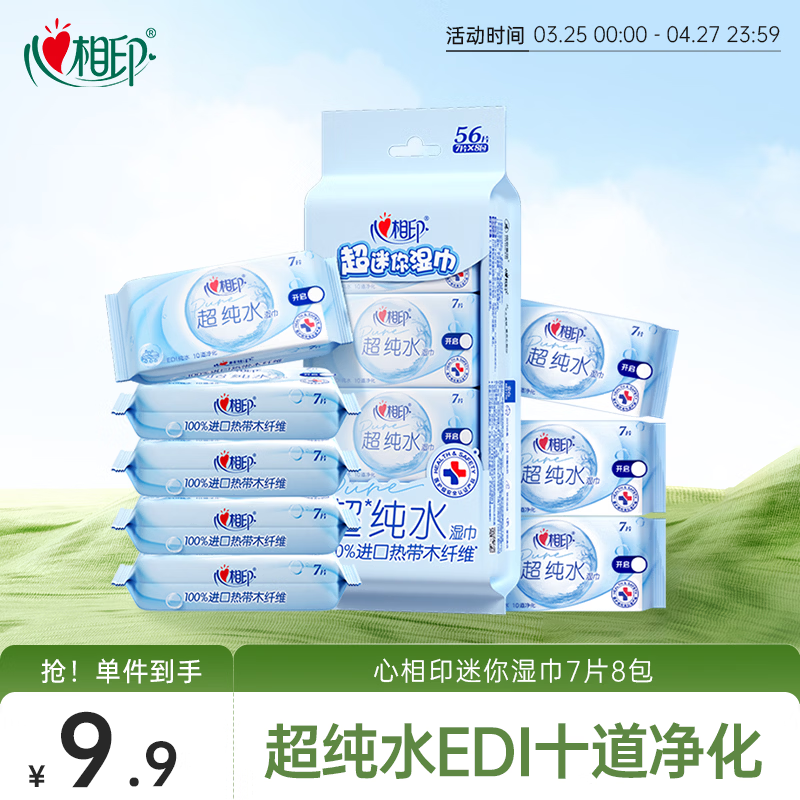 心相印EDI超纯水湿巾 7片*8包 迷你小包婴儿手口温和湿纸巾