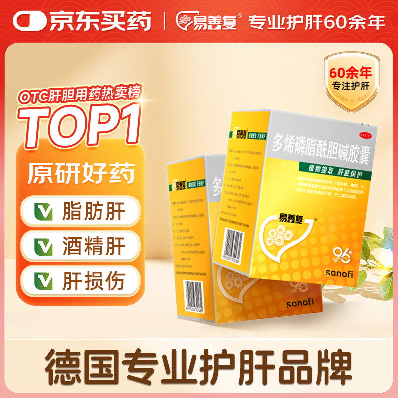 【原研药】易善复 多烯磷脂酰胆碱胶囊228mg*96粒*2盒装 口干口苦 脂肪肝专用药 养肝护肝