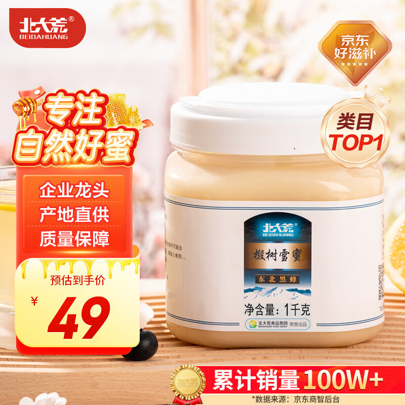 北大荒 东北黑蜂 椴树雪蜜 纯蜂蜜1000g 源产地 冲饮节日礼品送父母礼物