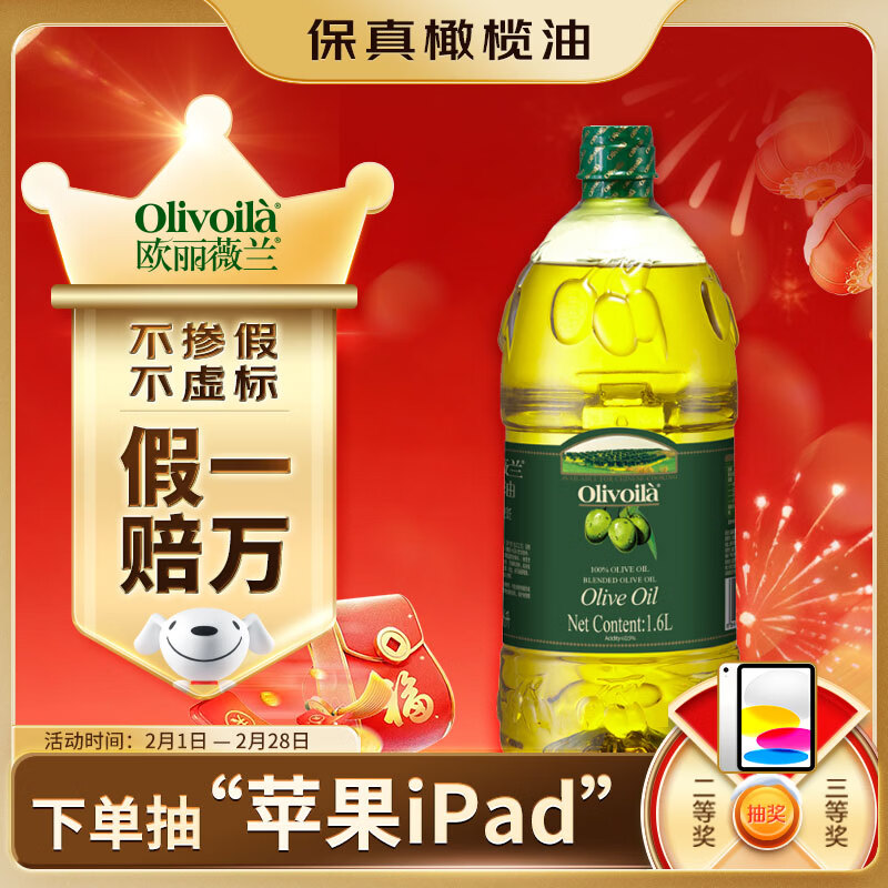 欧丽薇兰 Olivoila【保真橄榄油】食用油 压榨 纯正橄榄油1.6L