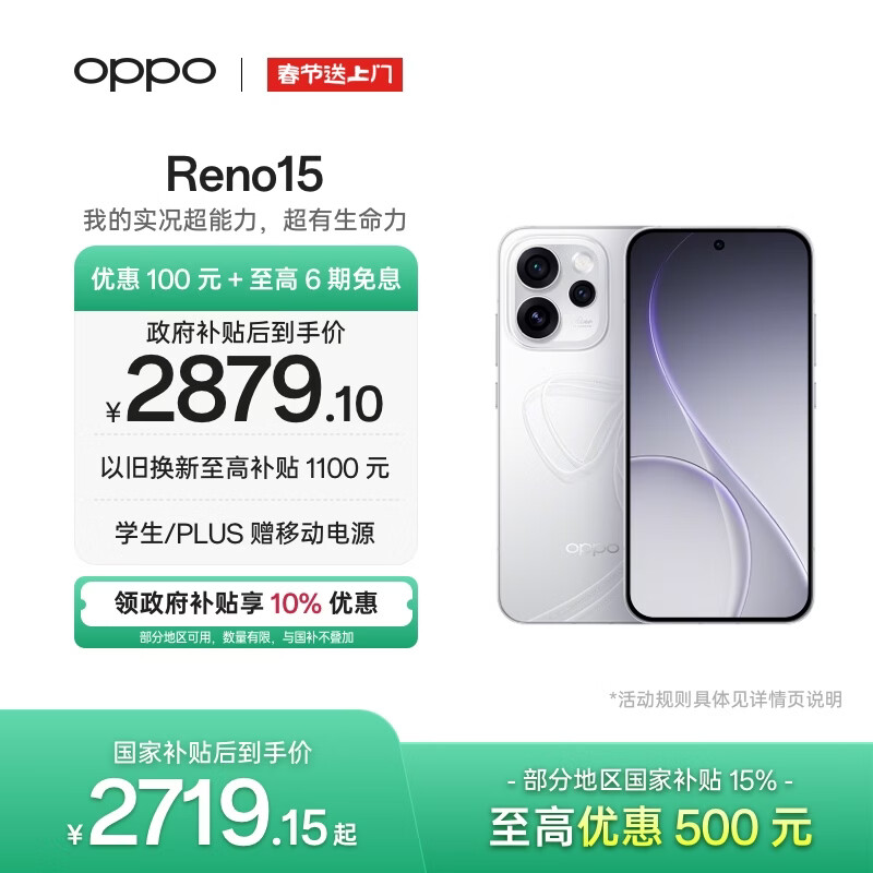 OPPO Reno15 12GB+512GB 星光蝴蝶结 2亿像素 实况拼图 5G智能小直屏学生游戏AI拍照手机 新品国家补贴