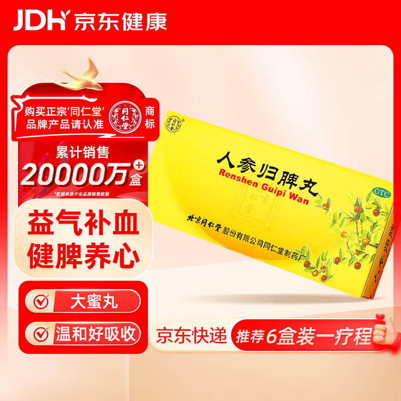 北京同仁堂 人参归脾丸 9g*10丸大蜜丸益气补血健脾养心失眠多梦气血不足心悸面色萎黄食少乏力 归脾丸