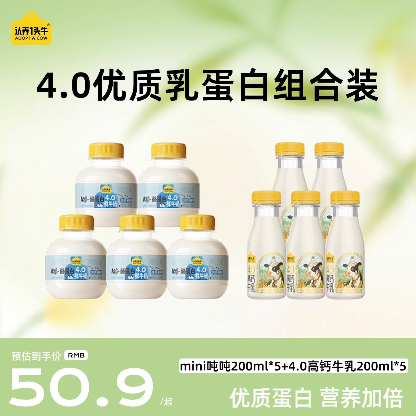 认养一头牛低温奶4.0蛋白 高钙牛乳200ml*5瓶+mini吨吨200ml*5瓶 源头直发