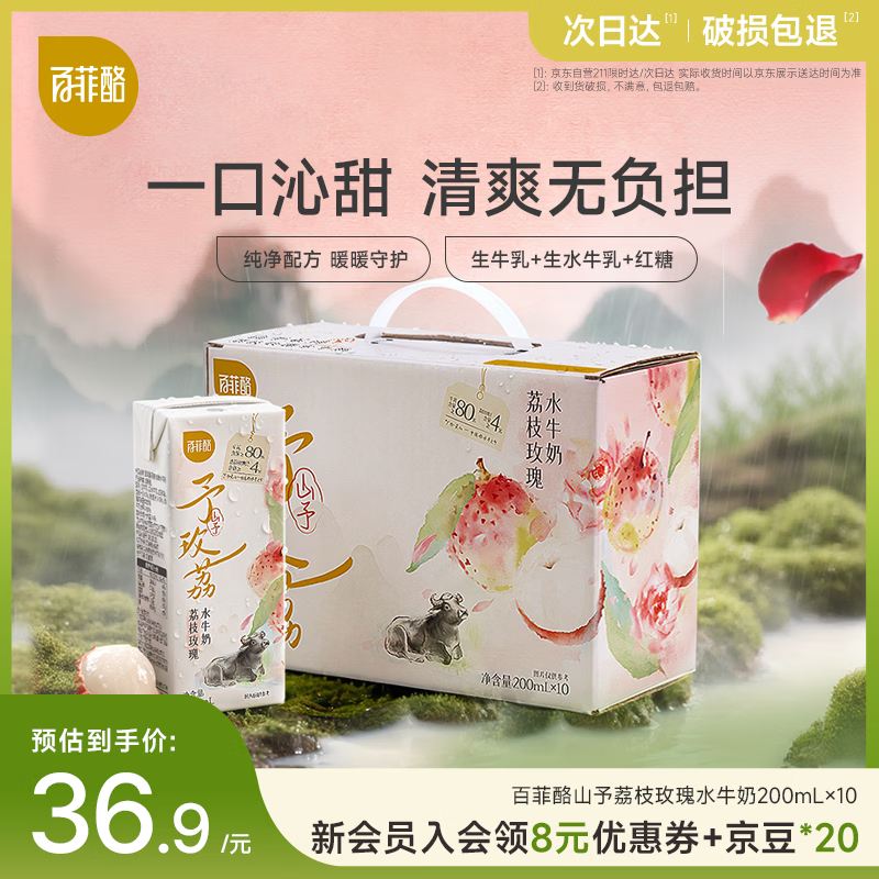 百菲酪【山予系列】荔枝玫瑰水牛奶200ml*10盒果香花香 早餐奶 送礼盒装