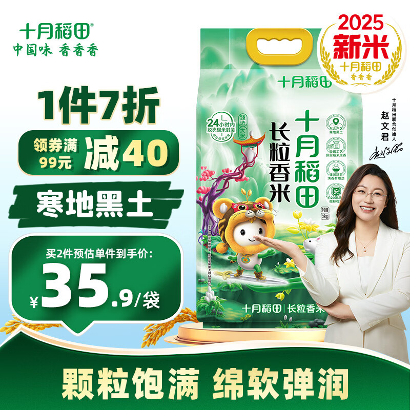 十月稻田 【2025年新米上市】长粒香大米5kg 东北大米10斤 团购福利 年货