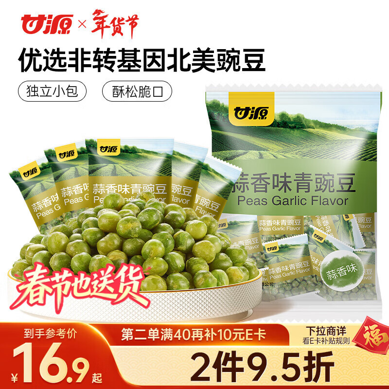 甘源牌蒜香味青豌豆青豆豌豆粒休闲零食坚果炒货酒友圈小吃食品量贩500g