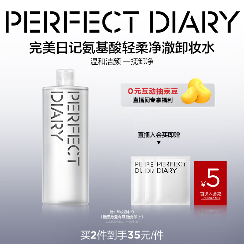 完美日记氨基酸轻柔净澈卸妆水500ml清洁眼唇卸温和生日礼物送女友
