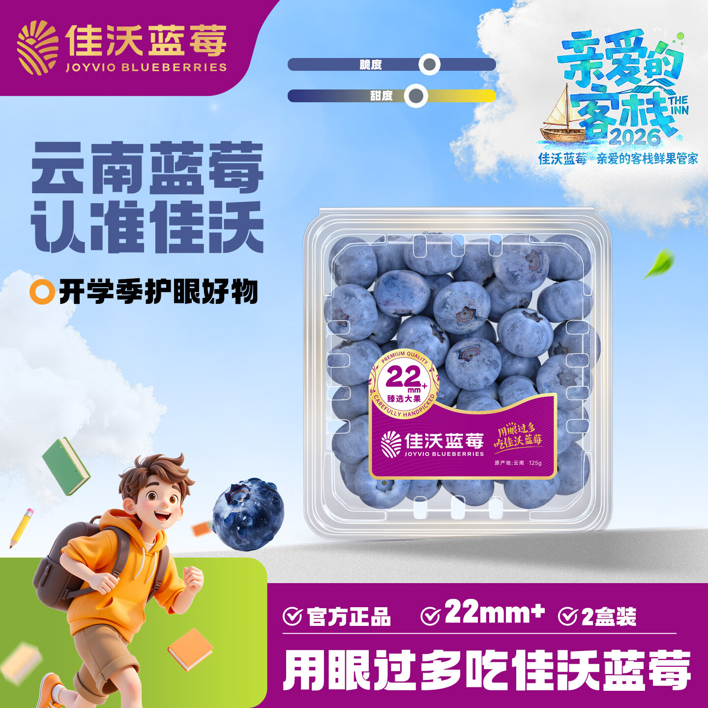 佳沃(joyvio)云南蓝莓 巨无霸22mm+ 2盒装 约125g/盒 新鲜水果