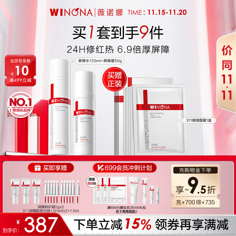 薇诺娜屏障水乳2件套爽肤水面霜护肤品乳液面霜套装