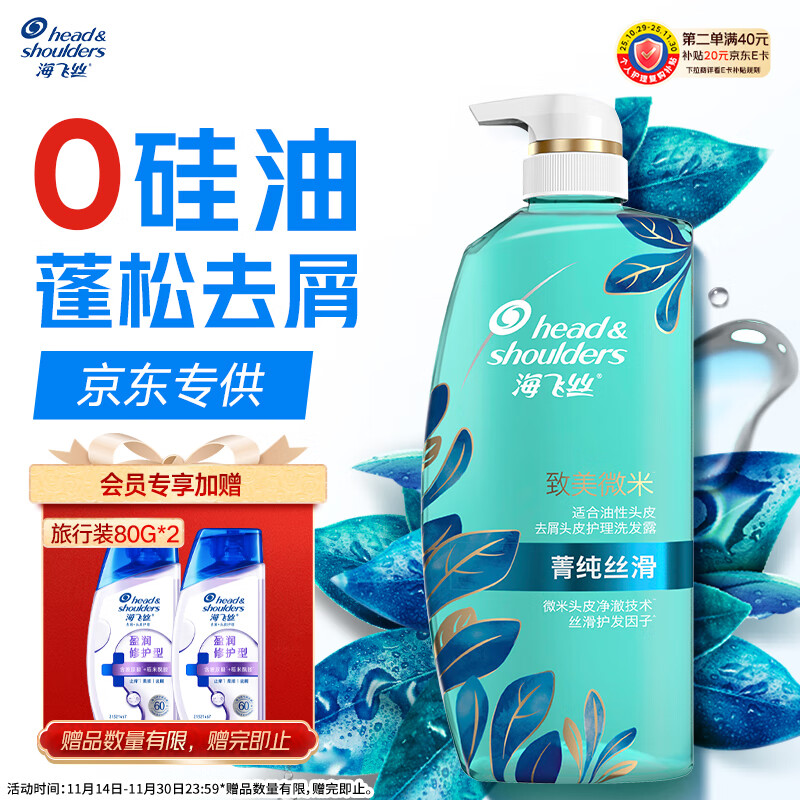 海飞丝去屑0硅油洗发水650ml菁纯丝滑男士女士洗发露控油蓬松刘宇宁同款