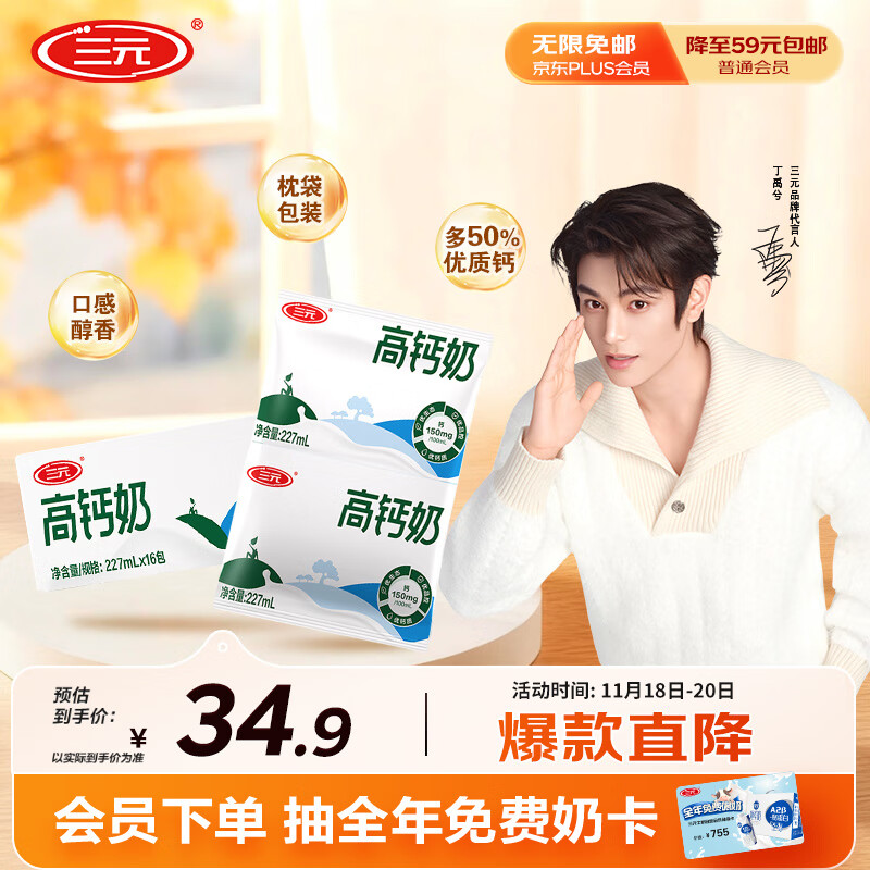三元高钙牛奶整箱 227ml*16包 枕包 营养早餐伴侣
