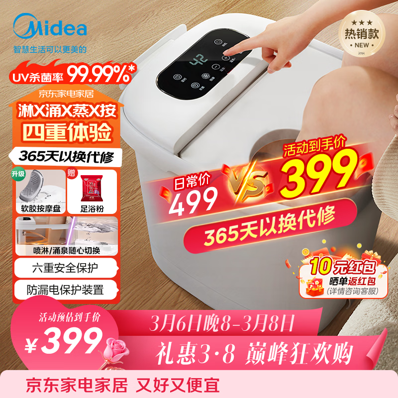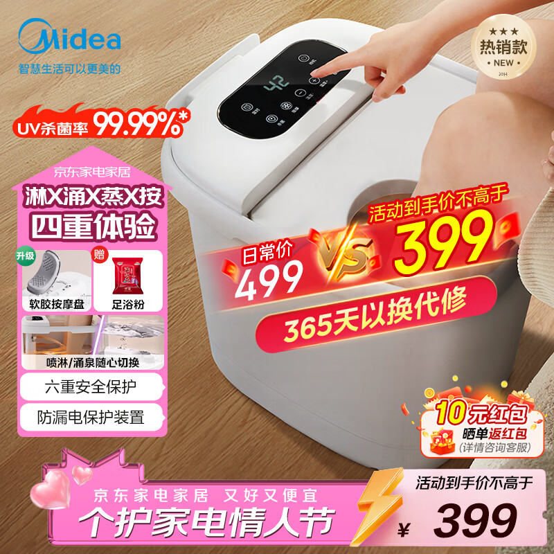 美的(Midea)泡脚桶杀菌足浴盆加热暖脚自动按摩保暖洗脚盆熏蒸暖泡喷淋三八节礼物送妈妈实用 ZL310