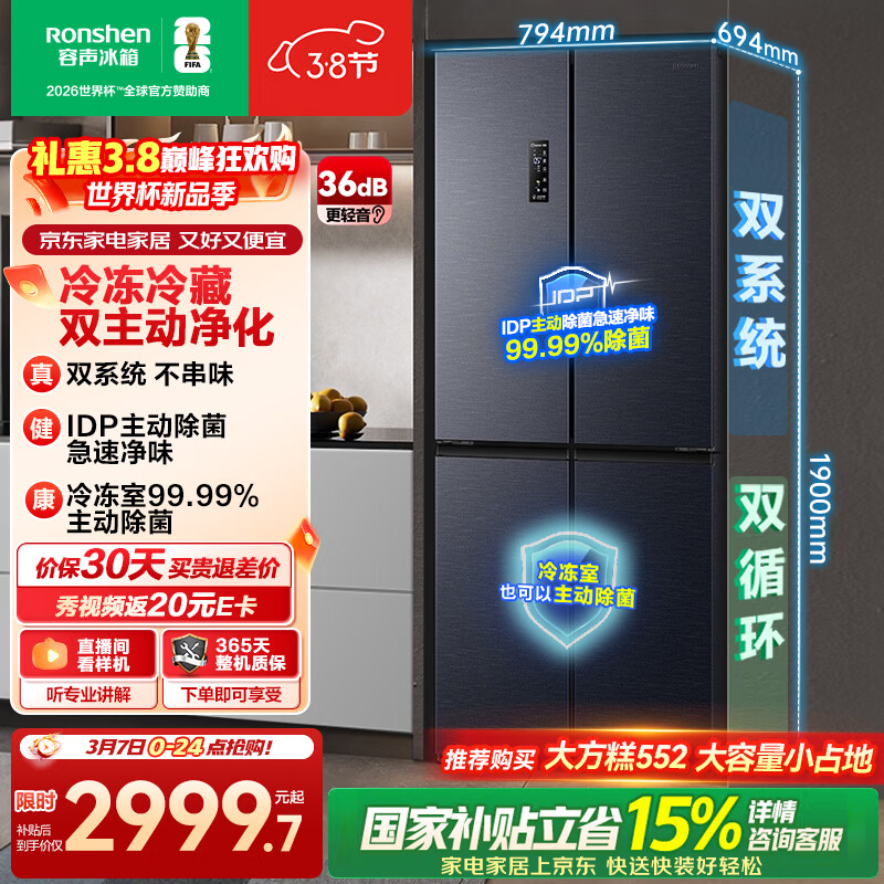 容声双净516L十字门冰箱双系统双循环一级能效风冷无霜变频以旧换新大容量灰BCD-516WD1FPA国家补贴