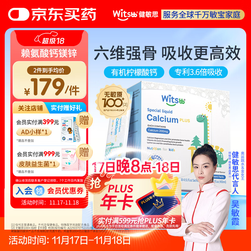 witsbb健敏思小蓝条赖氨酸钙镁锌婴幼儿童钙敏宝专研 30条/盒