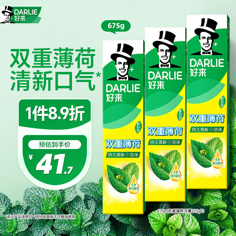 好来(原黑人)经典双重薄荷牙膏持久清新口气固齿去渍含氟3支675g