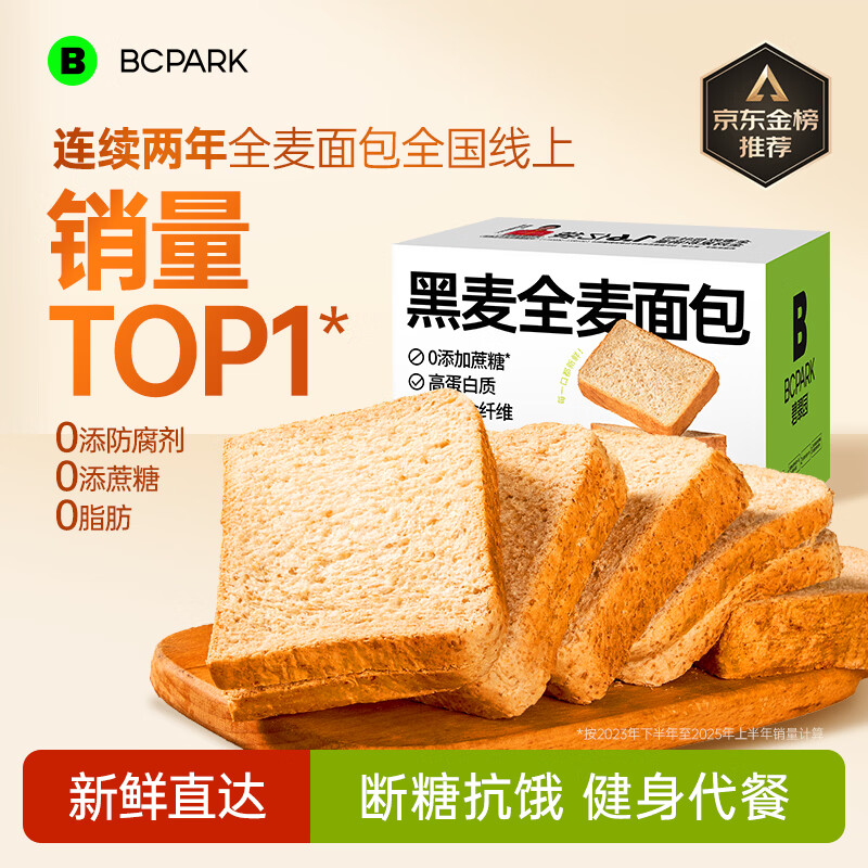 碧翠园全麦面包0脂0蔗糖黑麦吐司1000g粗粮面包早餐健身代餐食品零食