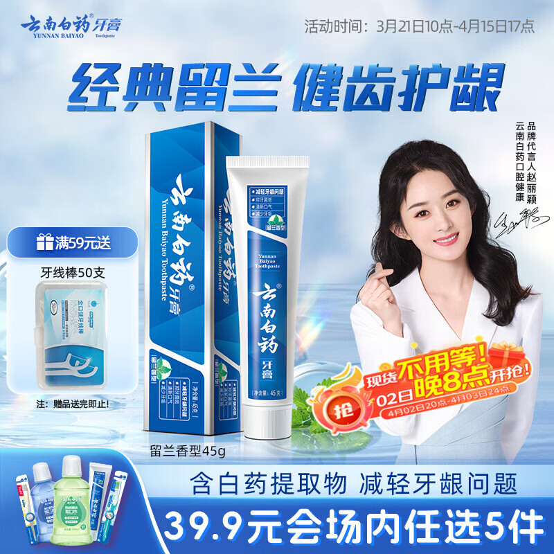 云南白药【39.9元选5件】经典系列牙膏改善牙龈问题留兰香型便携牙膏45g