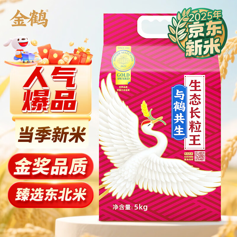 金鹤 与鹤共生 生态长粒王 东北大米 真空锁鲜 当季新米 十斤 10斤