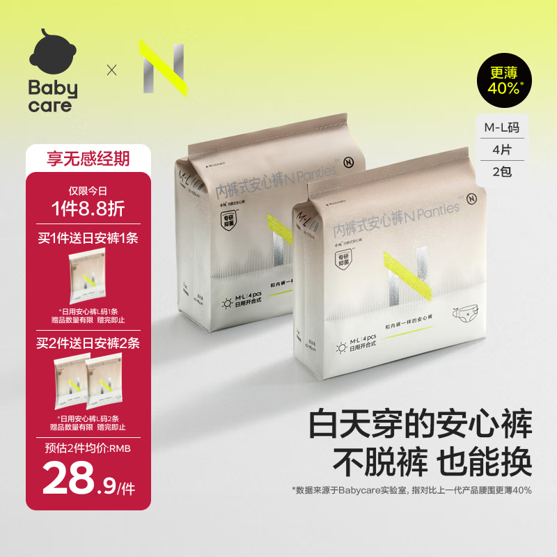 babycare安心裤产妇安睡裤卫生巾姨妈经期女拉拉安全裤京东自营M-L4条2包