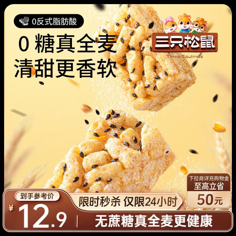 三只松鼠无蔗糖全麦沙琪玛500g 健康营养早餐粗粮饱腹代餐面包糕点点心