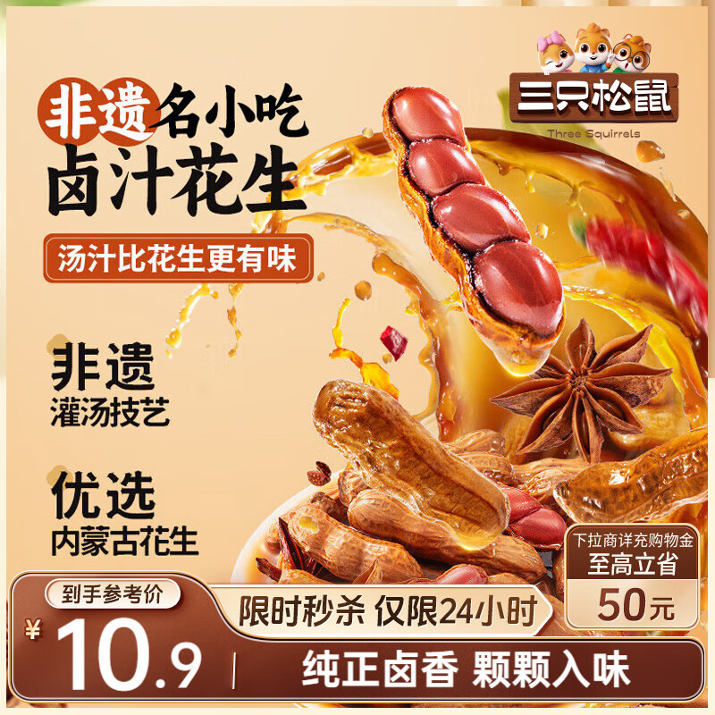 三只松鼠带壳卤汁花生五香味460g/袋水煮花生熟花生下酒菜小吃休闲零食