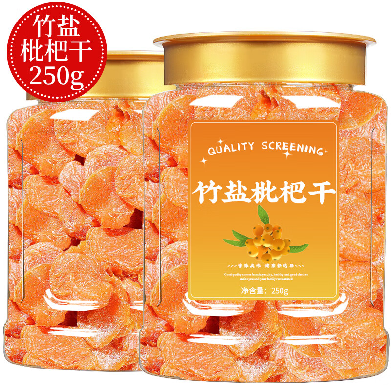 俏美味竹盐枇杷干250g/罐无核添加果干福建水果干云霄果脯蜜饯休闲零食